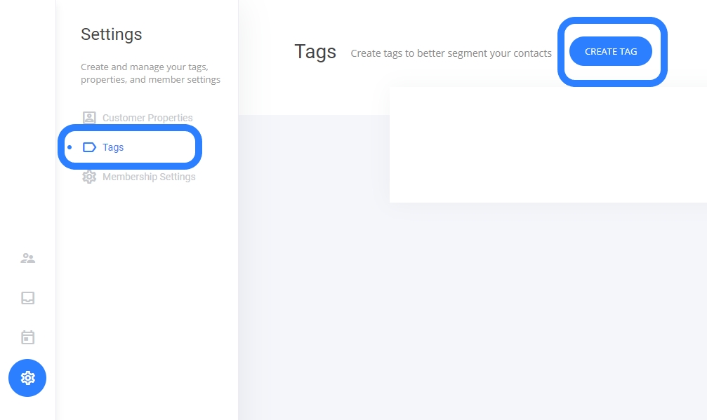 To create a tag > Go to the Contacts tab > Select the Tag Icon as shown below.