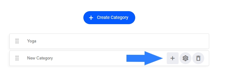 To add a sub-category to your main category, simply select the + icon as shown below